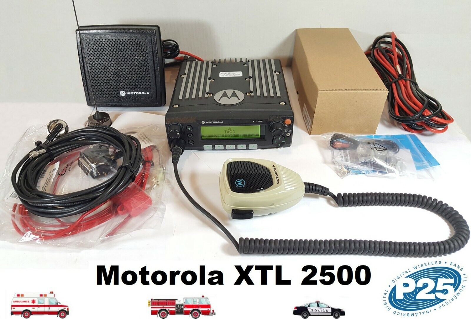Includes radio, antenna, cables, mounting bracket, mic, external speaker. COMPLETE KIT!